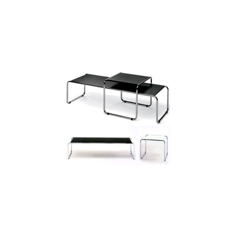 Description Fiche technique Les tables Marcel BREUER archilab_52+53 Marcel Breuer (1902 - 1981), après des études au Bauhaus de Dessau en Allemagne, devient architecte et designer de mobilier. Moderniste influant, il se passionne pour les constructions modulables et les formes simples. Célèbre pour le design de la "Wassily Chair", également en tube dacier plié. Marcel Breuer a conçu: la maison "binucléaire" au toit "papillon" (deux toits opposés inclinés vers le milieu). Laile des chambres est séparée centralement par un hall dentrée de celle du living / cuisine. la maison de lUNESCO à Paris. Tables avec pietement en acier chromé, plateau en laminé noir ou blanc. Dimensions Disponibles: Largeur: 55 cm, Profondeur: 48 cm, Hauteur: 45 cm. Largeur: 136 cm, Profondeur: 48 cm, Hauteur: 34 cm. Tables avec pietement en acier chromé, plateau en laminé noir ou blanc. Largeur: 55 cm. Profondeur: 48 cm. Hauteur: 45 cm. Largeur: 136 cm. Profondeur: 48 cm. Hauteur: 34 cm. La qualité des produits résulte d'une étude attentive et rigoureuse afin d'obtentenir une reproduction du modèle fidèle au projet d'orgine. La production est à cycle complète depuis l'usinage des fûts métalliques avec l'emploi d'un acier "mobilier" avec profilage et tréfilage de qualité supérieure. Chromages de grande dureté avec traitements anti-corrosion et ancorage. Soudures effectuées avec des systèmes à l'avant-garde des plus solides. les parties en mousse sont garanties pour leur élasticité et leur caractère totalement indéformable de manière à conserver une bonne résistance dans le temps.Les rembourrages sont en plûmes d'oie stérilisée avec des traitements anti-allergiques, polyréthane expanse, mousse à froid et dacron. l'entreprise dédie une attention particulière à la selection des cuirs de premier choix, traités avec des vernis spéciaux pour un nettoyage facile et des tissus qui sont choisis exclusivement en fibres naturelles. Le tout est proposé dans une large gamme de coloris. TabClick(0);