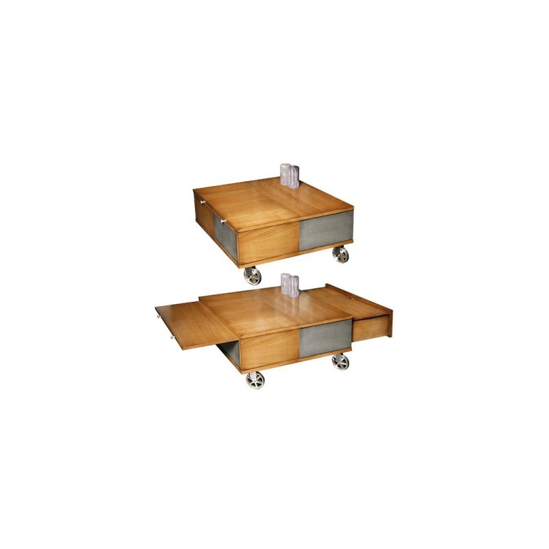 Tiroir avec plateau relevable pouvant servir de plateau supplémentaire et de compartiment rangement.