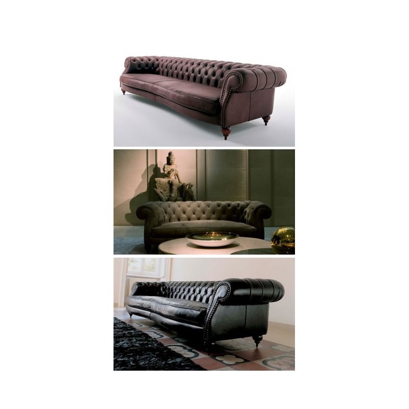 Structure en bois massif. Tenons, mortaises, vis et écrous. Dossier et assise mousse polyuréthane 35kg/m3 recouvert de fibre acrylic. Assise sangles élastiques croisées. Pieds visés, teinte coordonnée au cuir. Garniture des coussins en plumes et duvet d'oie lavés et stérilisés, à la fois élastique, souple, indéformable et durable.