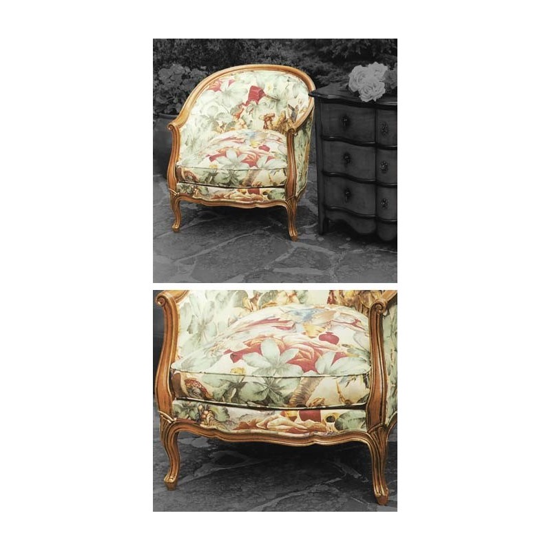 BERGERE Louis XV, Eric MARJOLET Caractéristiques: Bois: Hêtre. Tissu B - Didon et Enée (autre tissu: nous contacter). Teintes bois: BOURGOGNE, IVOIRE, VERT OLIVE, TURQUOISE, PIVOINE, CORAIL, NOIR Cliquez ici pour visualiser les teintes bois coordonnées ou Teinte au choix parmi le nuancier RAL (sans supplément de prix): Cliquez ici pour visualiser les teintes nuancier RAL Nous vous recontactons dès reception de votre commande pour valider ou définir vos teintes. Dimensions: Hauteur: 85 cm, Hauteur d'assise: 50 cm, Largeur: 72 cm, Profondeur: 79 cm.