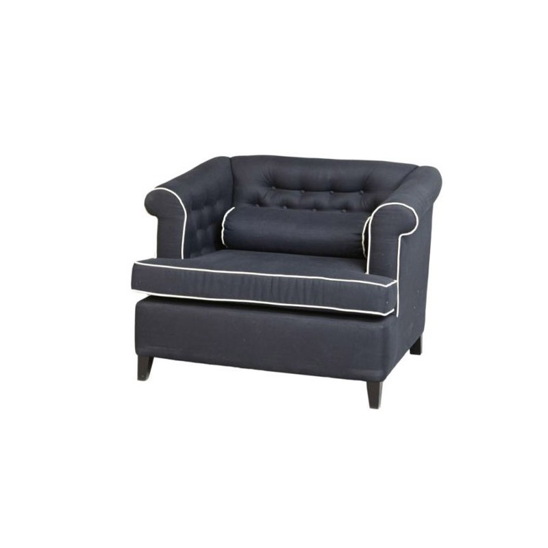 Fauteuil capitonné Caprice avec coussin, piètement laqué noir, recouvrement tissu coloris noir composition 55% Lin - 45% Coton, dimensions : H:82 x P:96 x H:48