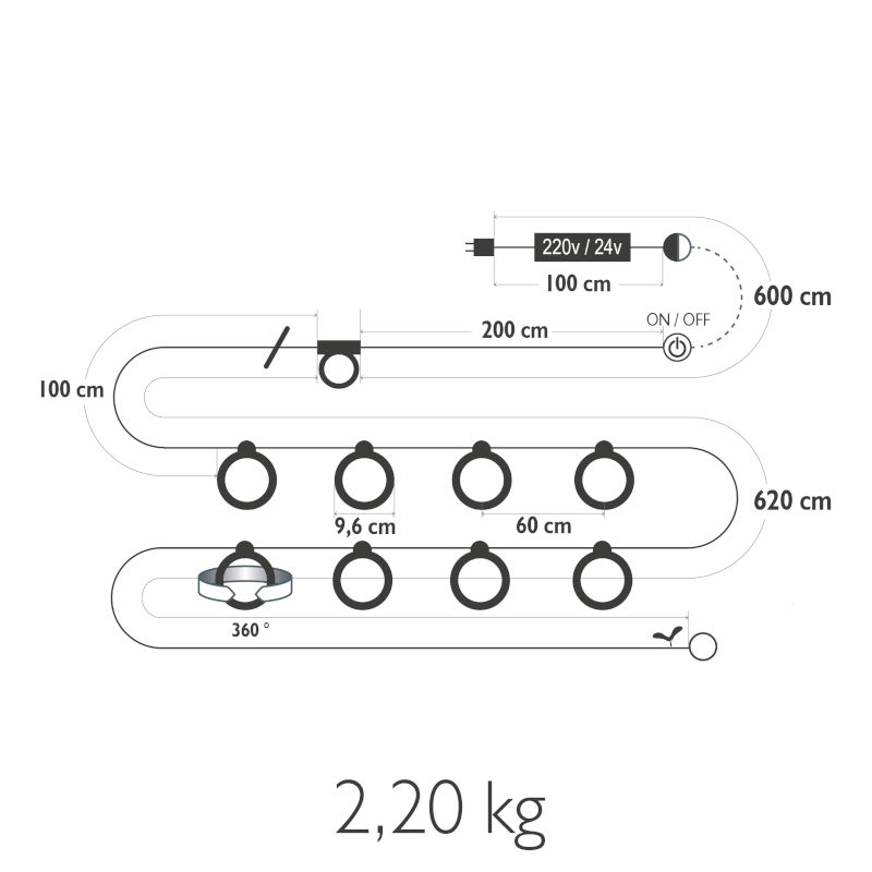 Câble lumineux 6.20 mètres (8 anneaux) + 6 mètres de câble pour branchement secteur