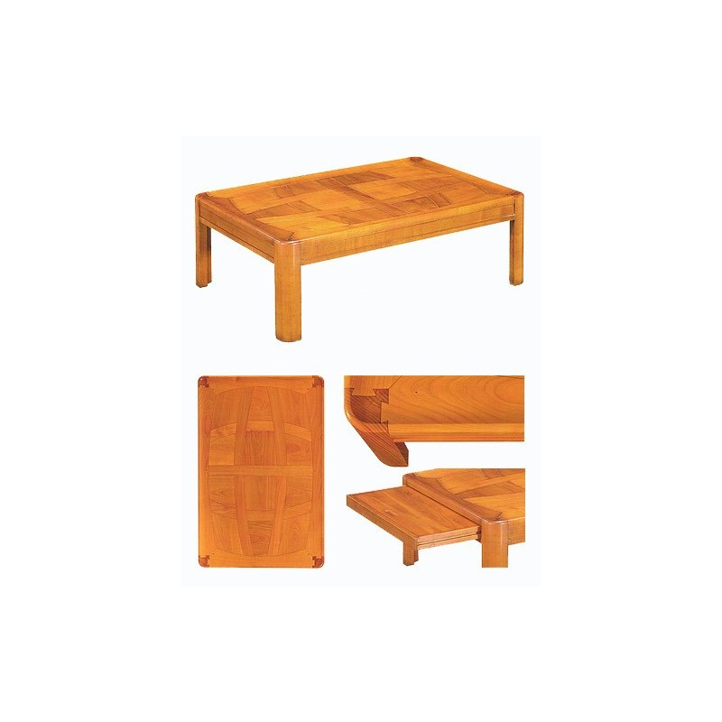 Table basse rectangulaire Campbell Merisier Caractéristiques: 1 tiroir/ tirette Dimensions: L:120 cm - H:39 cm - 80 cm Patines et finitions sur demande, les échantillons bois vous sont envoyés dès reception de votre commande afin de valider vos teintes.