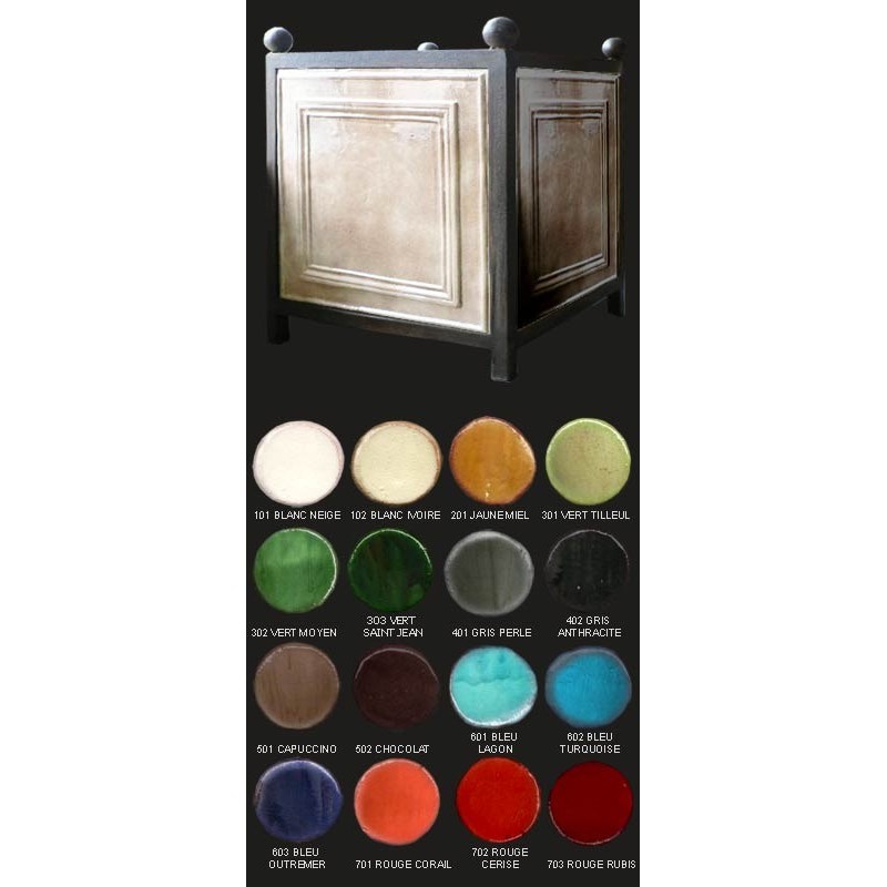 BAC A ORANGER BLANC IVOIRE 48cm Caractéristiques: La fabrication faite entièrement dans les ateliers de Saint Jean de Fos est artisanale et manuelle. Après montage, le bac est engobé puis suit une longue période de séchage. L'émaillage fait à l'arrosoir permet d'obtenir des nuances superbes dues au choix des oxydes et aux superpositions. Après une longue cuisson, les bacs les plus clairs peuvent être vieillis par sablage puis application manuelle d'une patine. La structure est en fer forgé vieilli. Dimensions: Longueur: 48 cm, Profondeur:48cm, Hauteur: 62 cm. Nos bacs étant réalisés de façon artisanale, les couleurs, poids et dimensions sont indicatifs. Nous vous conseillons d'utiliser nos bacs comme cache-pots, en décoration intérieure ou extérieure, ou de les isoler du contact de l'eau contenue dans la terre et la plante par un hydrofuge liquide ou un voile d'hivernage. Il est préférable de rentrer les bacs de petite taille en période hivernale.
