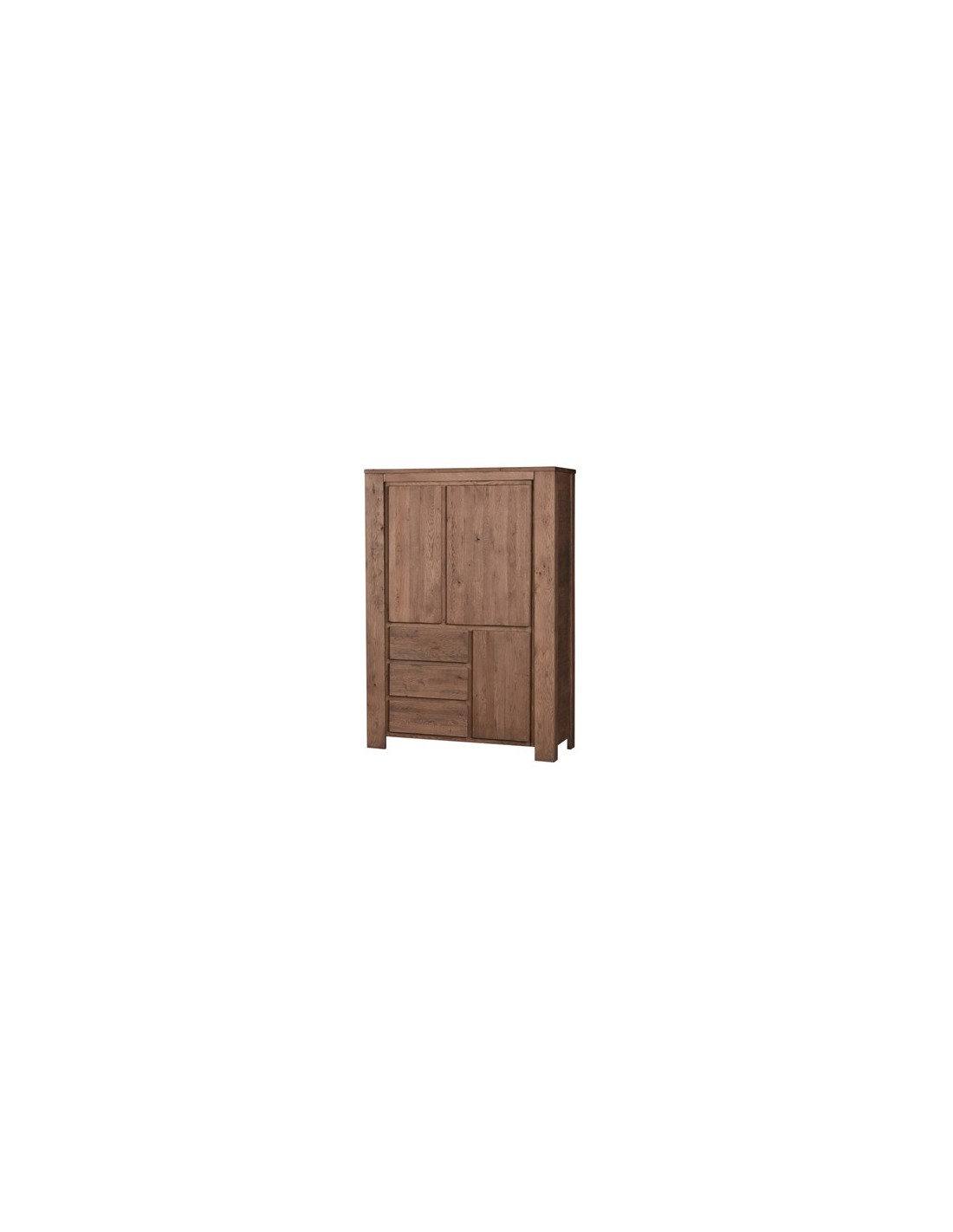 Armoire. Structure chêne massif, finition marron, aménagement 3 portes et 3 tiroirs, dimensions L:120cm x P:45cm x H:170cm