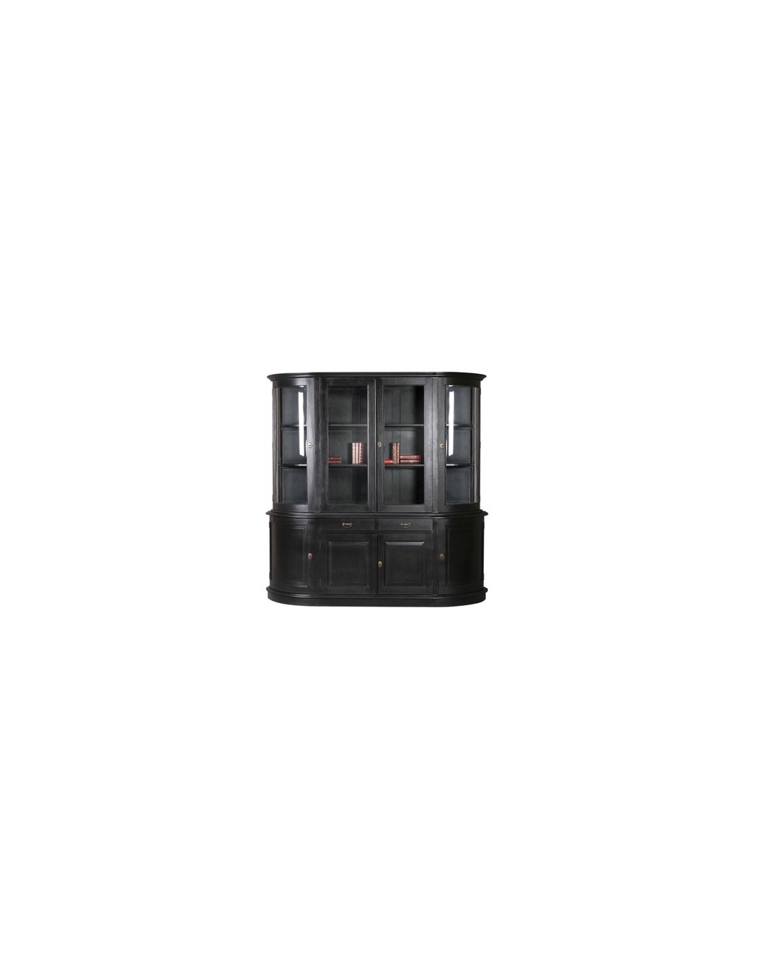 Structure : MahoganyColoris : NoirAménagement : 4 portes vitrées, portes arrondies de chaque côtésDimensions : L:215cm x P:50cm x H:210m