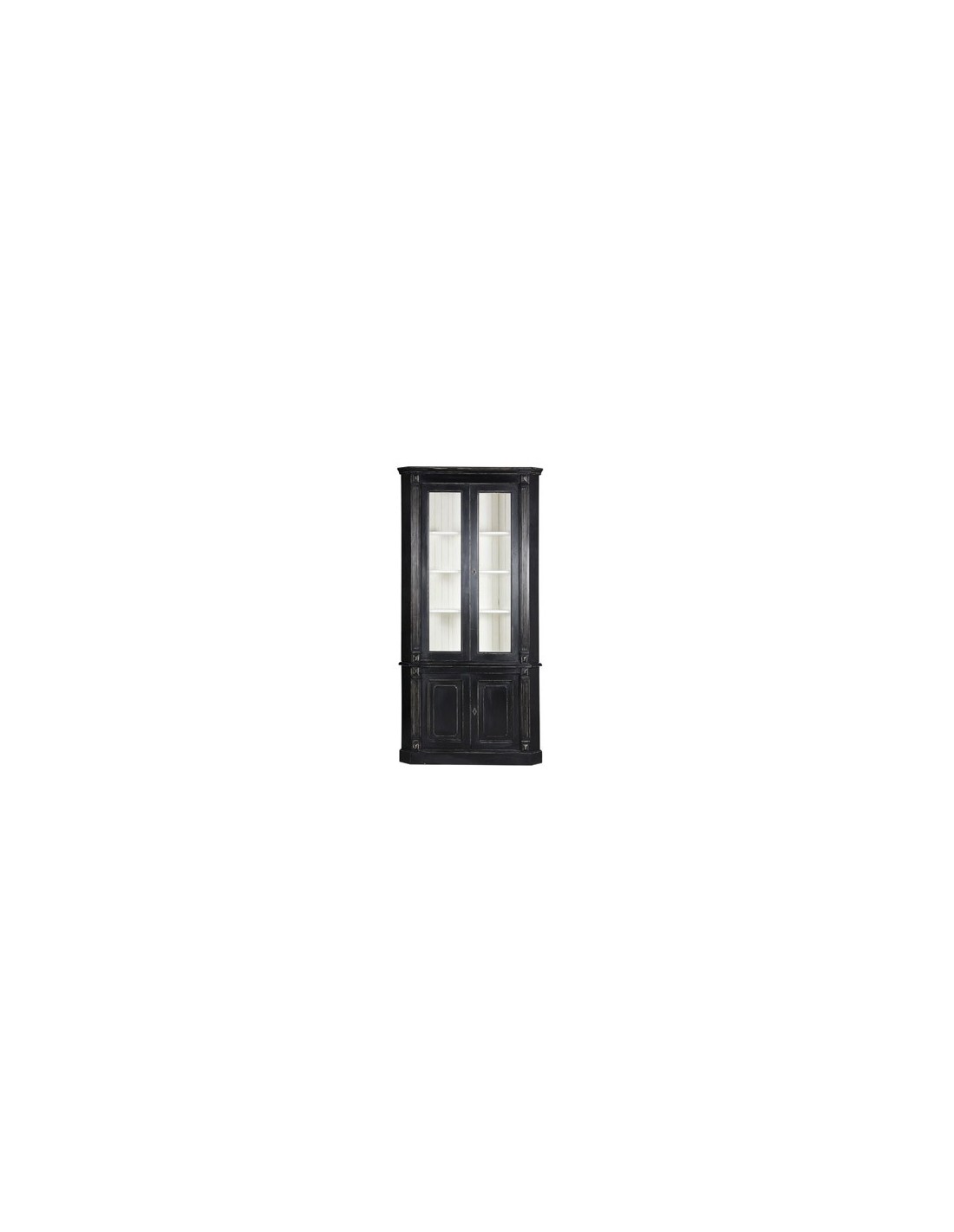 Structure : Pin massifColoris : NoirAménagement : 2 portes vitrées en haut et 2 portes pleines en basDimensions : L:114cm x P:52cm x H:228cm