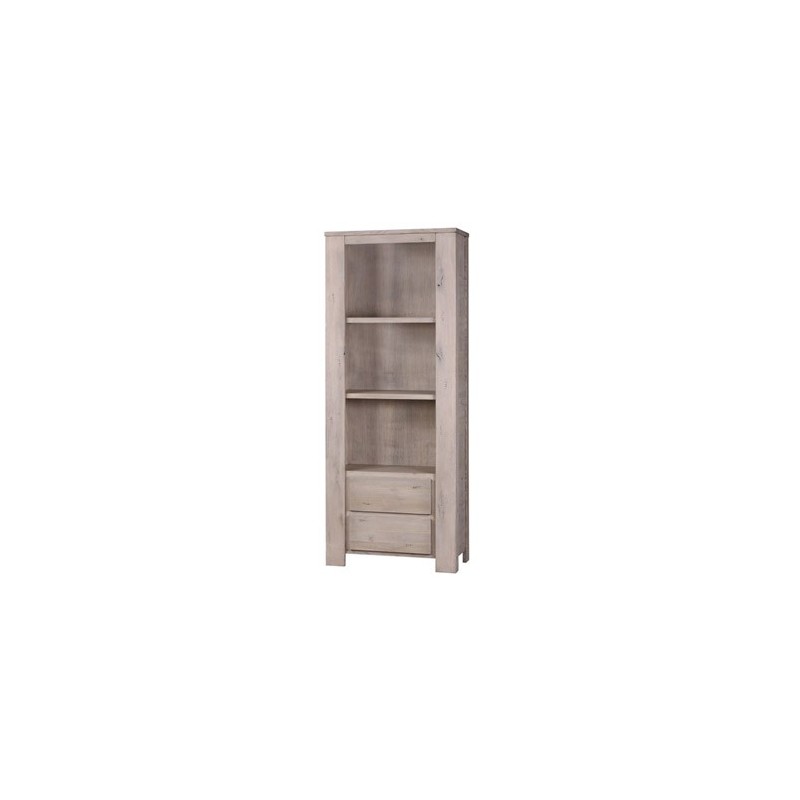 Structure : Chêne massifColoris : GrisAménagement : 2 étagères et 2 tiroirsDimensions : L:80cm x P:40cm x H:200cm