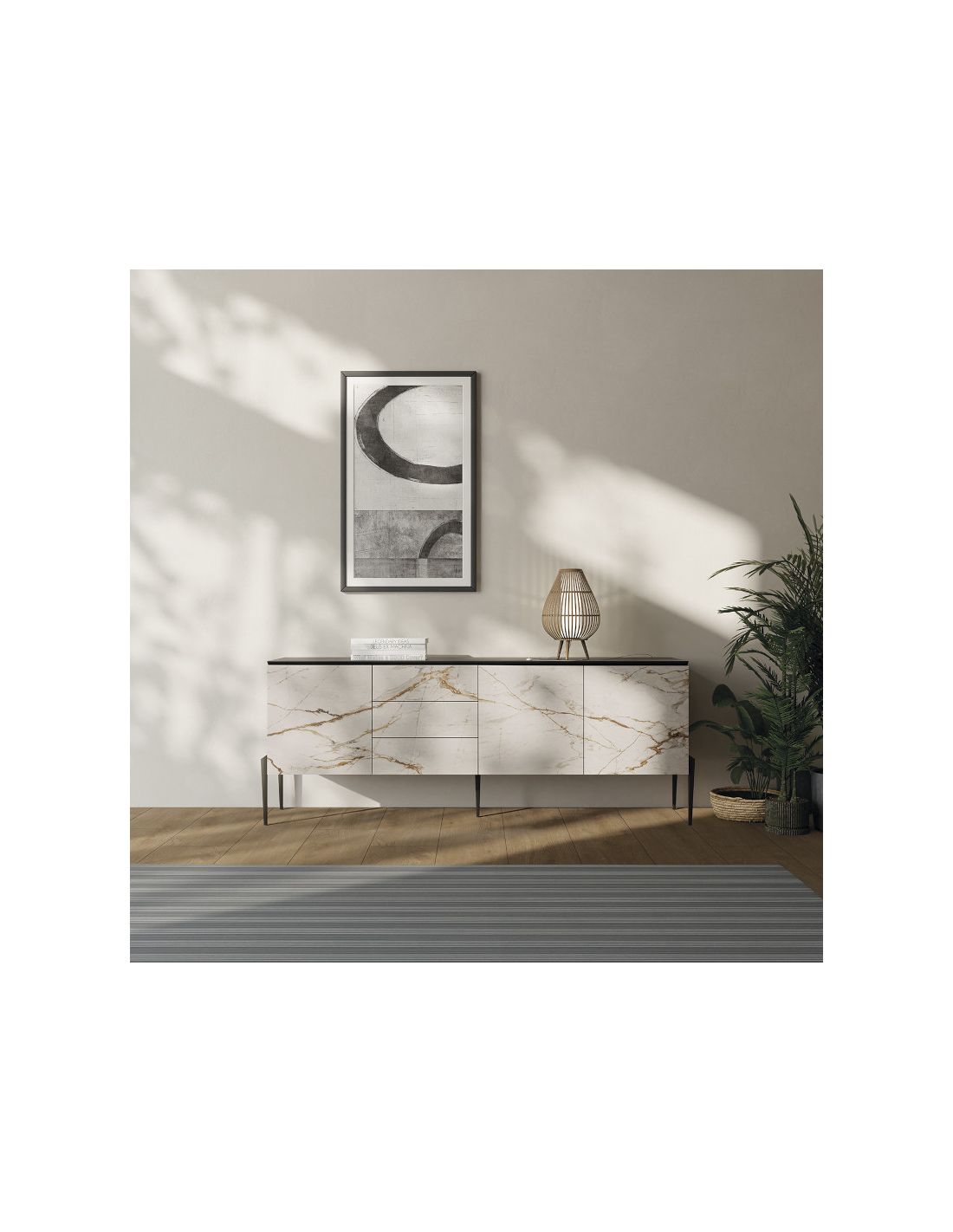 Buffet 3 portes 4 tiroirs HOME LIVING entièrement recouvert de céramique DEKTON, longueur 200 cm, hauteur 93 cm