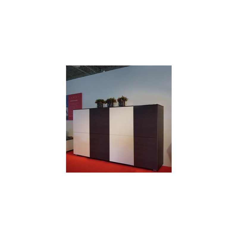 BUFFET 8 PORTES KARATGrand buffet contemporain en laque mate, brillante ou teintes chêne.Vous avez le choix de réaliser votre buffet en une seule teinte ou en bicolore.Si vous choisissez un buffet bicolore, la teinte dominante sera la teinte de la structure (côtés et haut du meuble).L'autre teinte sera disposée selon vos désirs sur les portes, en damier, en alternant 1 porte sur 2, horizontalement, verticalement... Nous vous contactons dès réception de votre commande pour convenir avec vous de l'organisation des teintes de votre meuble.Aménagement: Meuble 8 portes (dimensions d'un élément porte L60xH64xP51 cm)1 étagère derrière chaque porte.Options laque brillante et plateau verre: nous contacter au 04 67 28 71 10 ou par mail en cliquant ici.Dans tous les cas une fois votre commande passée sur notre site, nous vous contactons pour confirmer les teintes que vous avez choisies et, éventuellement, nous vous faisons parvenir gratuitement les échantillons de bois/laque/verre pour validation (échantillons à nous retourner impérativement).Caractéristiques: Largeur: 240 cm Profondeur: 51 cmHauteur: 135 cmDifférentes teintes de laques possibles cliquez ci-dessous pour les visualiser: Cliquez ici pour visualiser les échantillons de laque Différentes teintes de bois possibles cliquez ci-dessous pour les visualiser:Cliquez ici pour visualiser les échantillons de bois