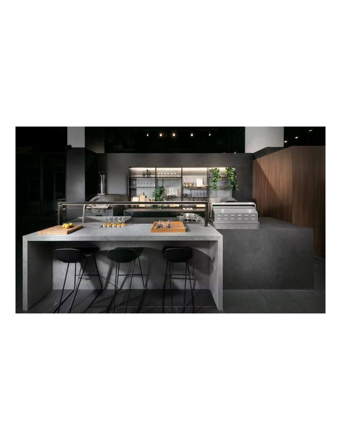 Avec sa structure en granit sombre dans des tons gris et noirs, Eter affiche des contrastes doux, mais avec un esprit radicalement contemporain.