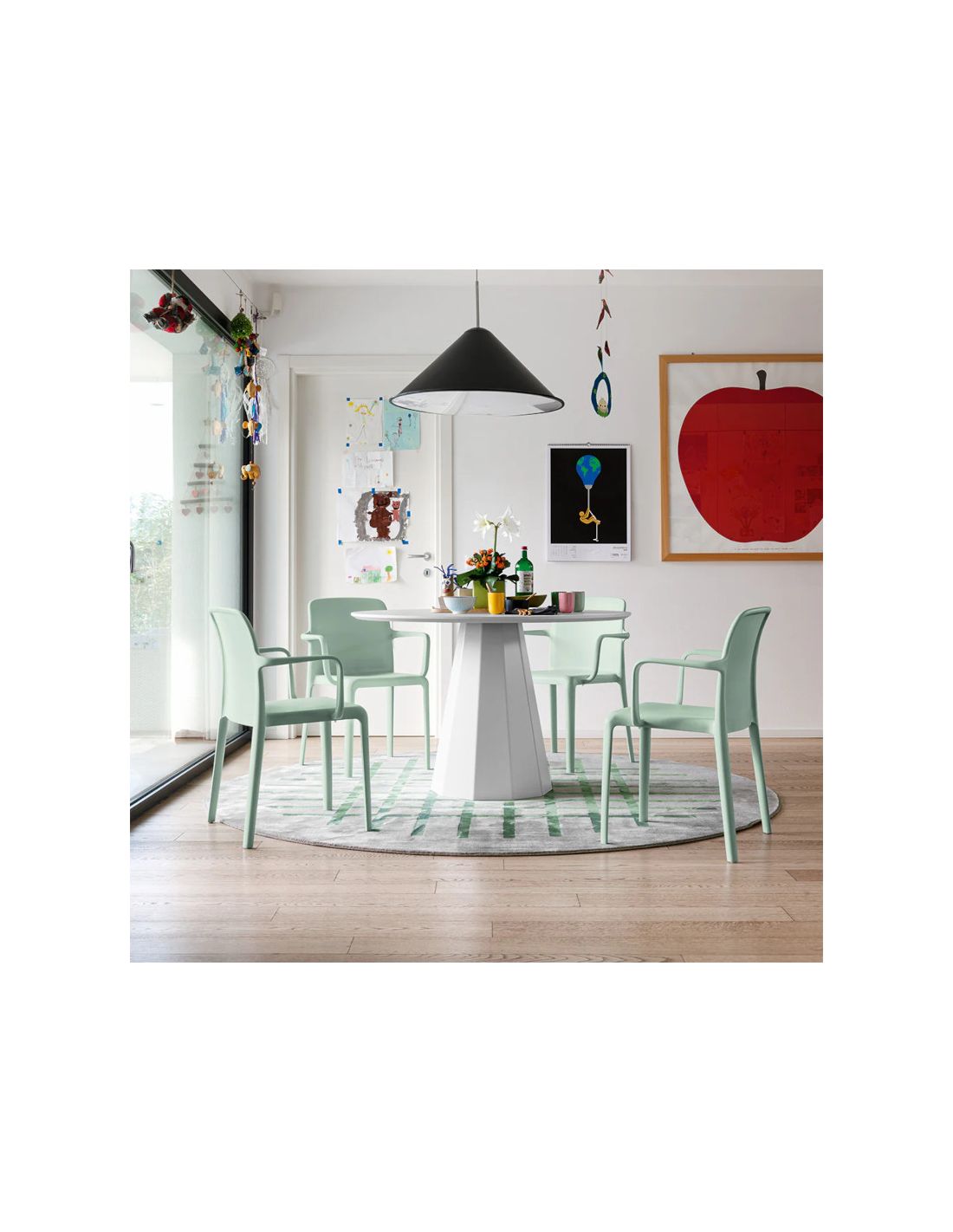 Parfaite également pour une utilisation en extérieur, la chaise Bayo est empilable jusqu'à 6 pièces.