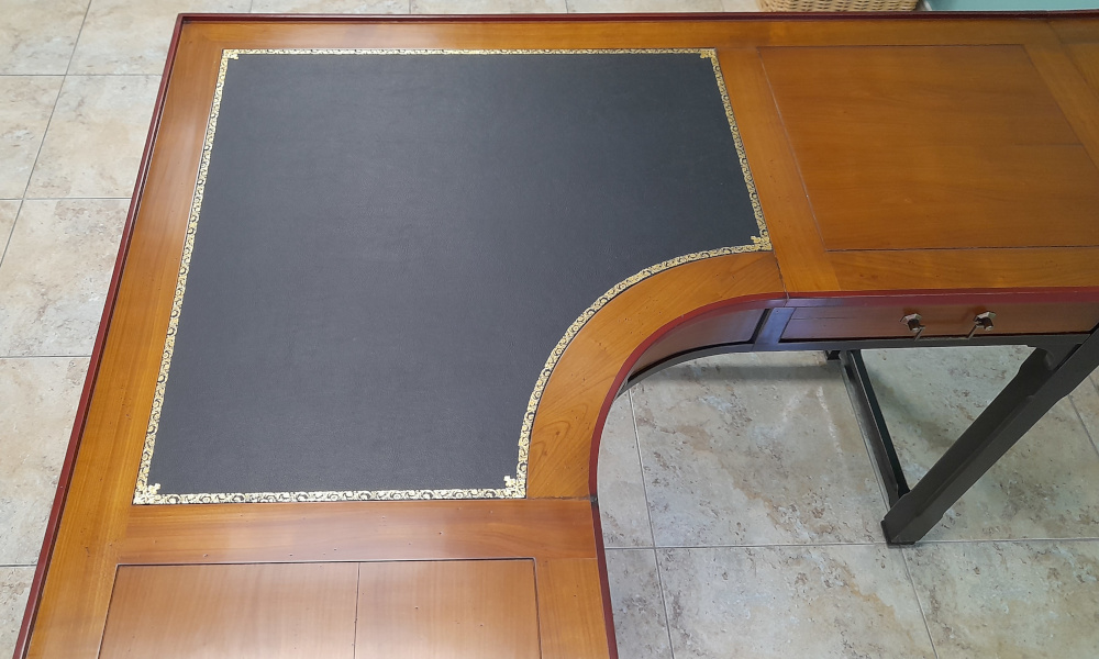Cuir grain très fin de bureau FLORIDA sur mesure, vachette napa, avec dorure