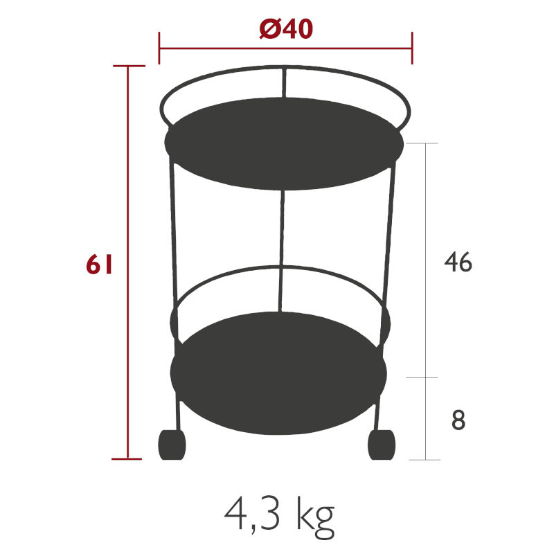 Dimensions Guéridon à roulettes GUINGUETTE FermobStructure fil acier.