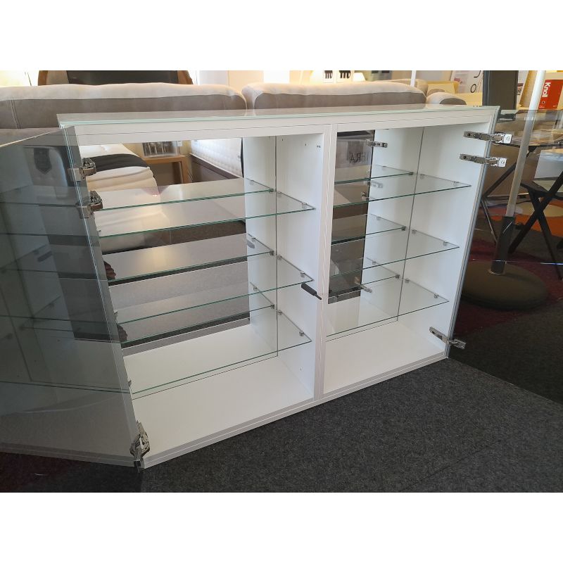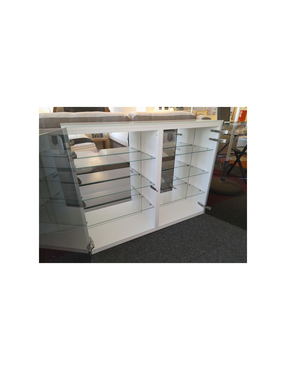 Déstockage Vitrine design verre laqué, portes vitrées, étagères verre, miroir fond