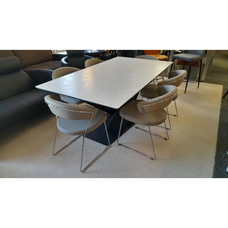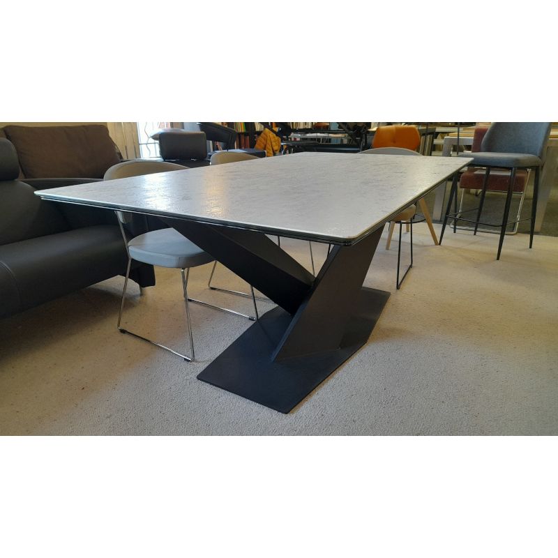 Piétement de table noir en métal design pour recevoir une céramique ou un plateau bois au choix.
