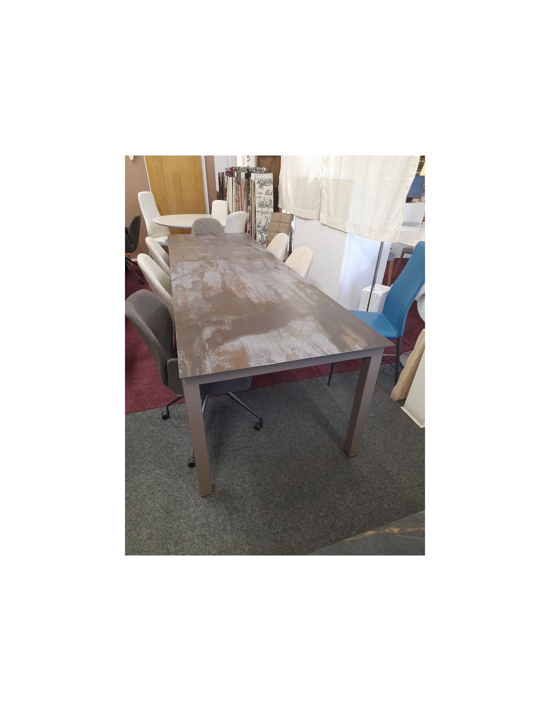 Déstockage Table extensible contemporaine ALISON 180 cm + 2 allonges 50 cm, plateau céramique DEKTON TRILIUM ép. 0.8 cm