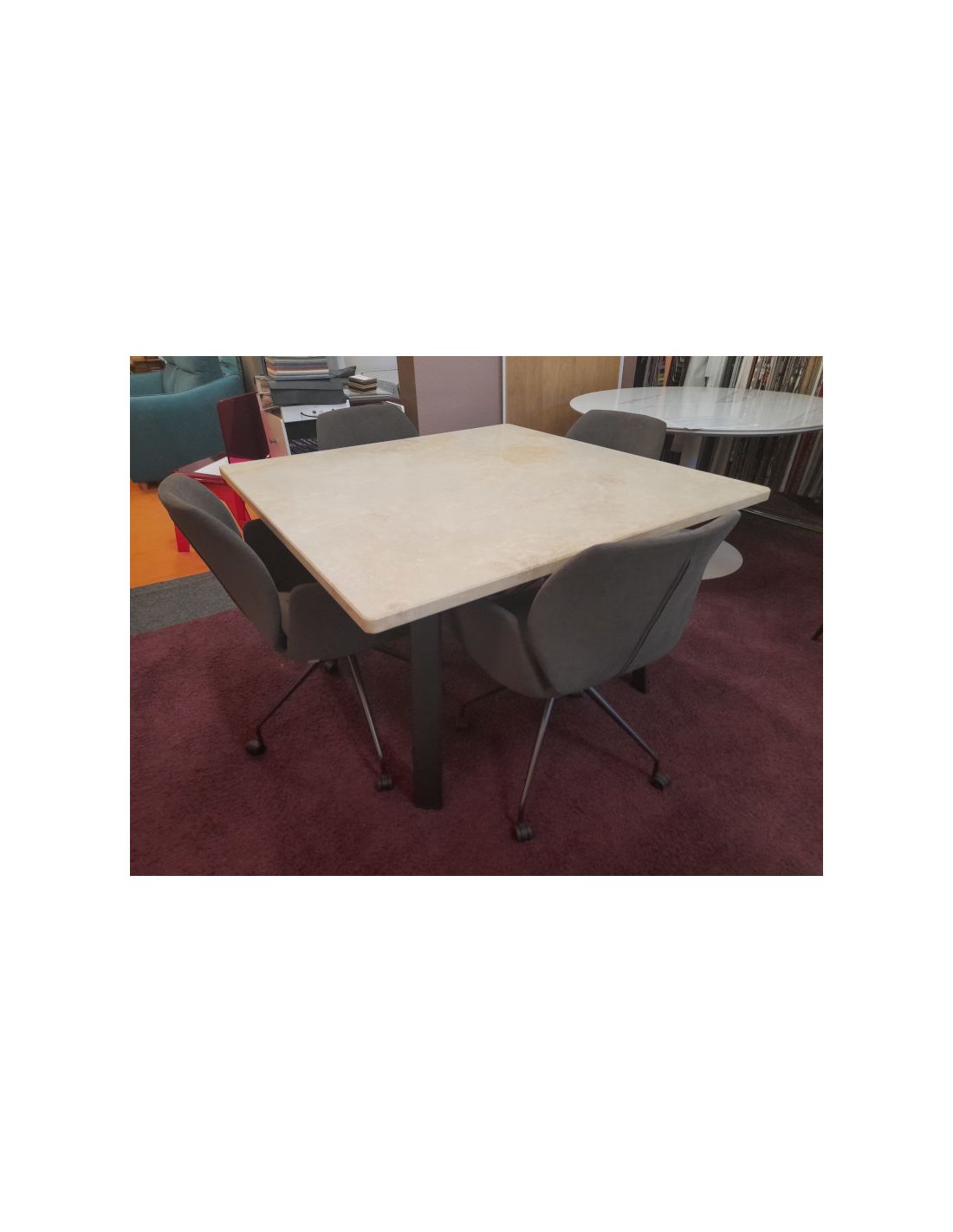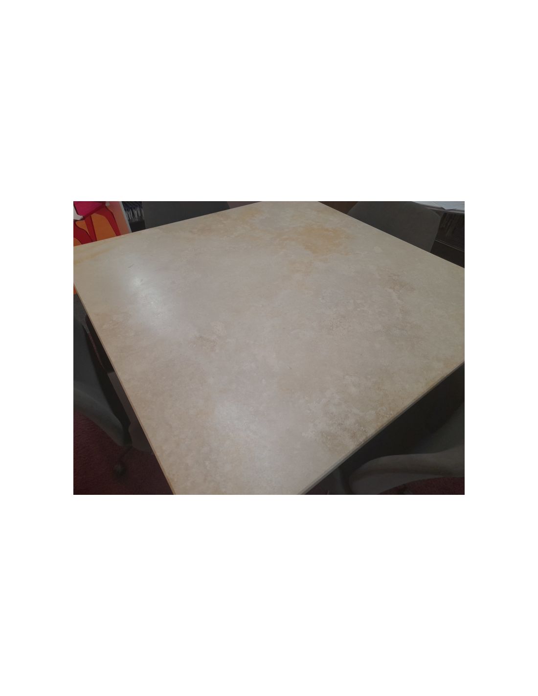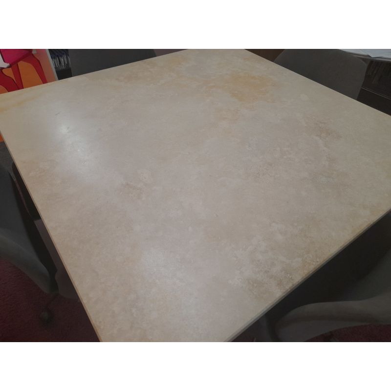 Dimensions : Longueur 1200 mm x Largeur 1200 mm x Épaisseur céramique 30 mm x Hauteur table 76,5 cm