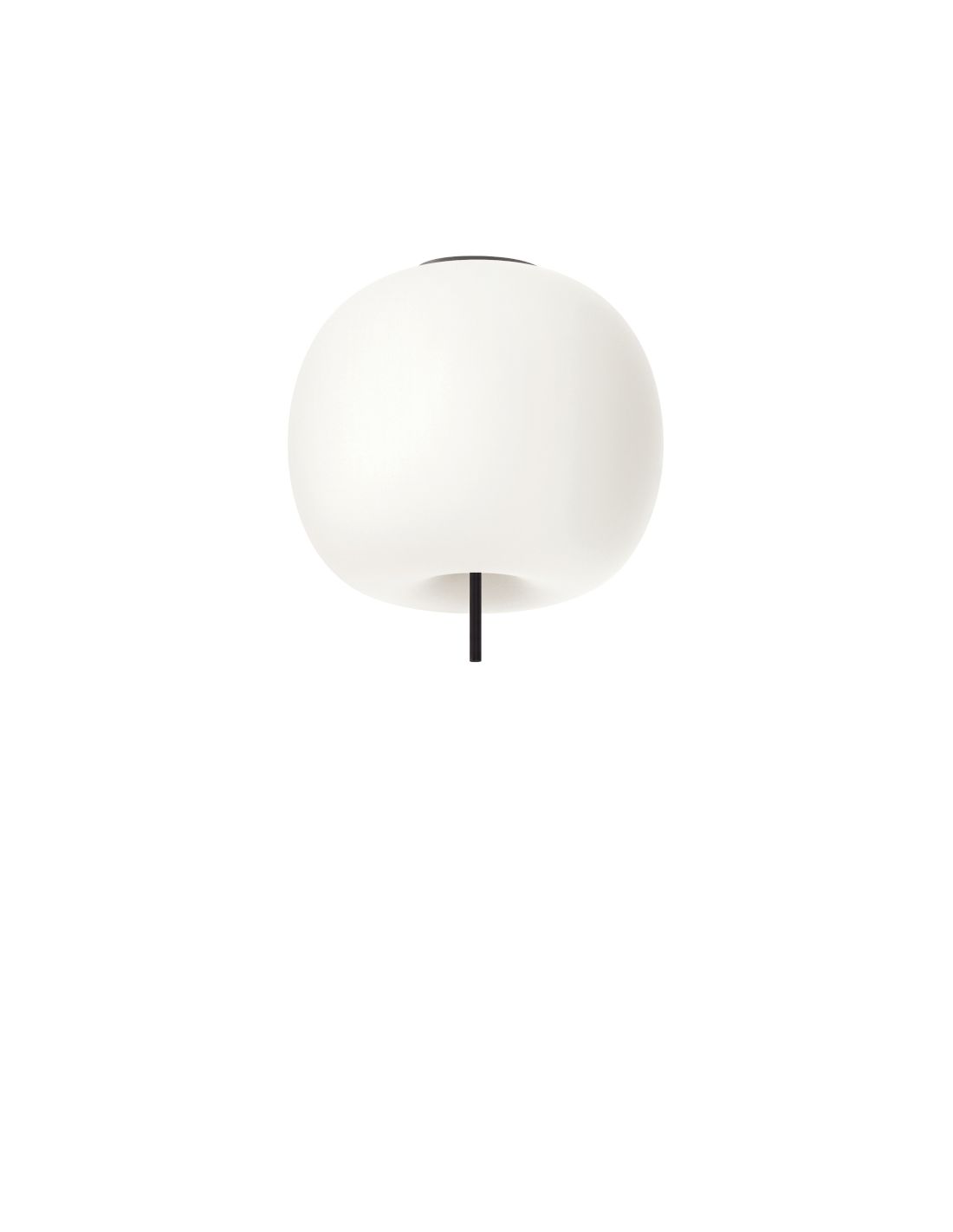 Diffuseur en verre opalin soufflé double couche. Corps en métal verni disponible en trois finitions: noir, cuivre et laiton.