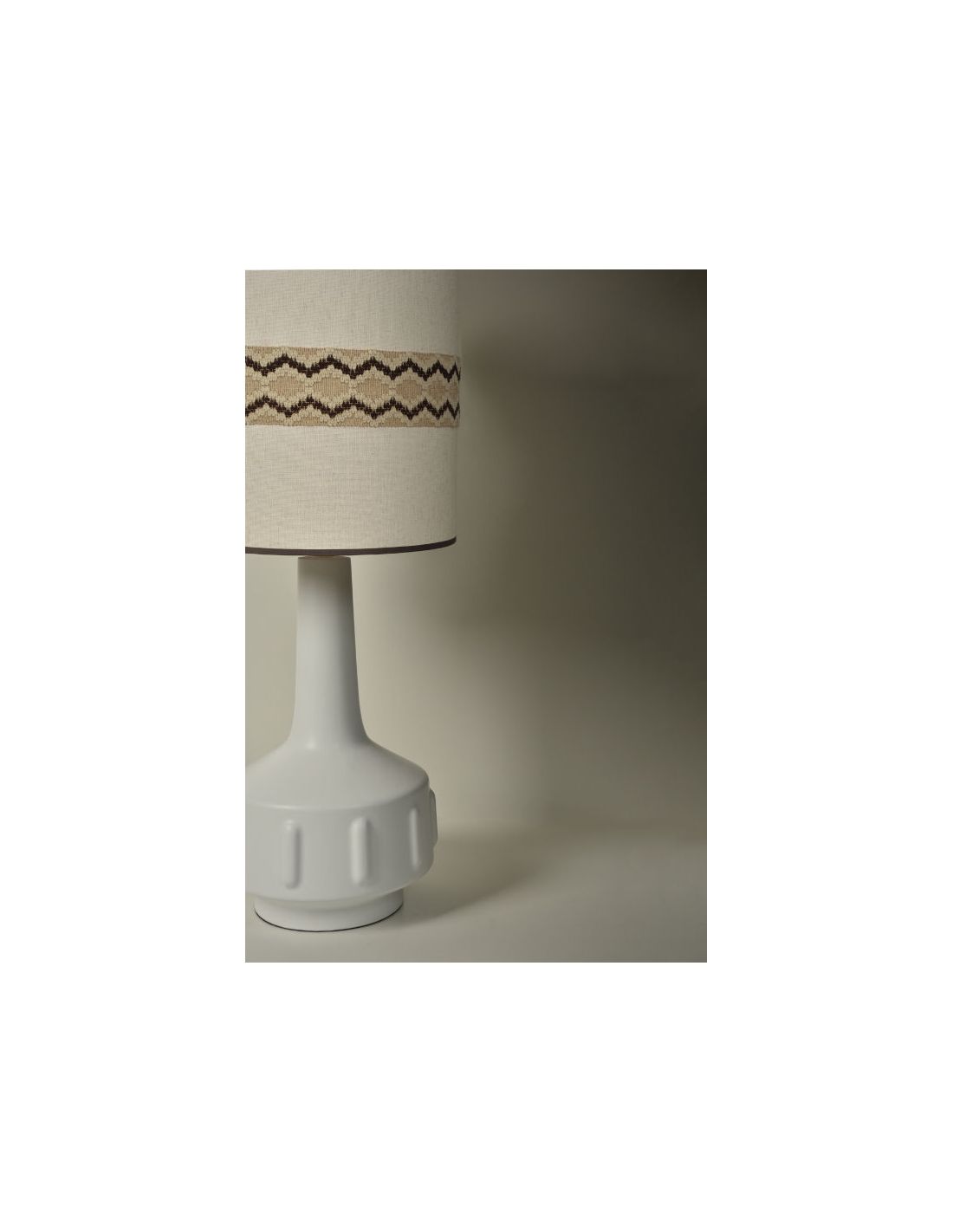 Abat-jour forme tube avec cover en tissu décoré d'un galon brodé en lin et coton, fabrication française.