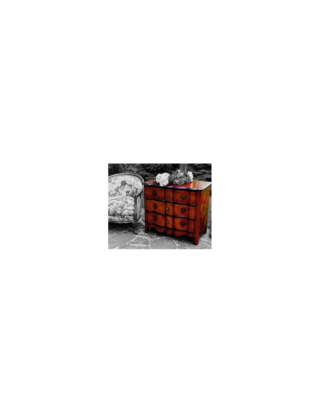 Commode ARBALETE, Louis XIV Caractéristiques: 3 tiroirs moulure teinte acajou. Côtés parquetés massif. Teintes bois: BOURGOGNE, IVOIRE, VERT OLIVE, TURQUOISE, PIVOINE, CORAIL, NOIR Cliquez ici pour visualiser les teintes bois coordonnées ou Teinte au choix parmi le nuancier RAL (sans supplément de prix): Cliquez ici pour visualiser les teintes nuancier RAL Nous vous recontactons dès reception de votre commande pour valider ou définir vos teintes. Dimensions: Hauteur: 79 cm, Largeur: 90 cm, Profondeur: 52 cm.