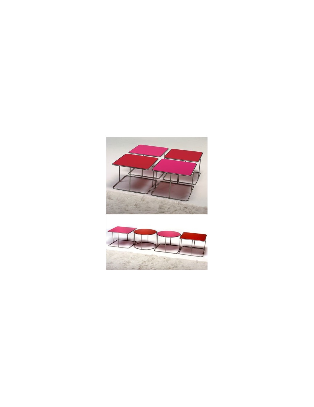 Les tables JOLLY, design Enrico BUSCEMI, Pergiorgio LEONE Série de petites tables basses disponibles en 3 versions différentes: Jolly round, Jolly Square, Jolly Mix. Dimensions: Table JOLLY SQUARE Largeur: 50 cm. Longueur: 50 cm. Hauteur: 35 cm. Table JOLLY ROUND Diamètre: 50 cm. Hauteur: 35 cm. Table JOLLY MIX Largeur: 50 cm. Longueur: 50 cm. Hauteur: 35 cm.