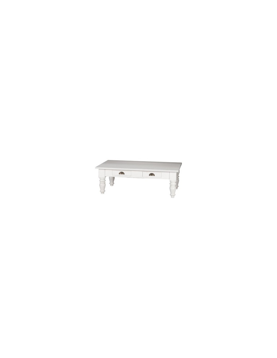 Table basse à tiroirs 130x75. Structure mahogany, finition crème, aménagement 2 tiroirs, dimensions L:130cm x P:75cm x H:45cm