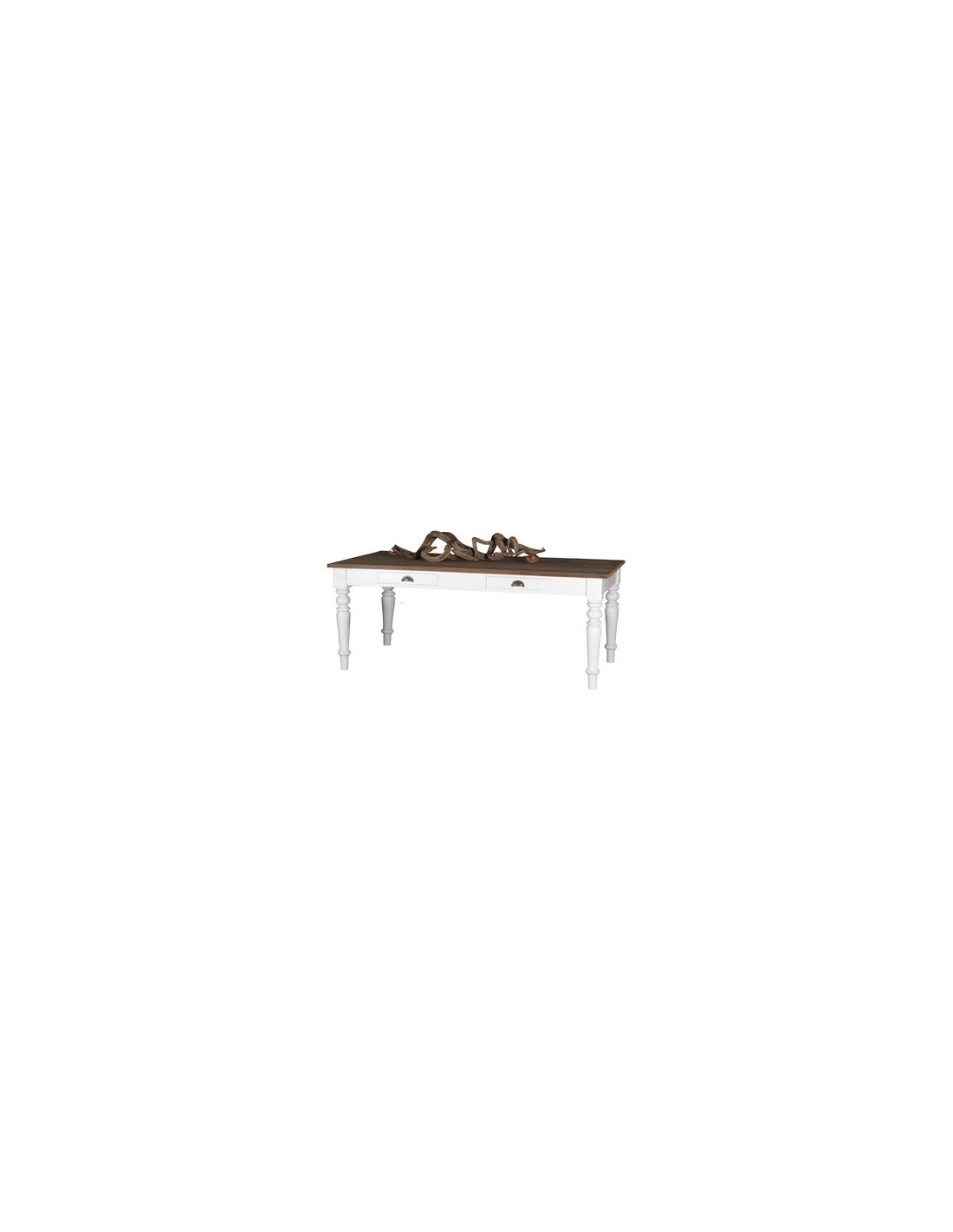 Table de repas 2 tiroirs 200x100. Structure teck et mahogany, finition blanc avec plateau bois brut, aménagement 2 tiroirs, dimensions L:200cm x P:100cm x H:78cm