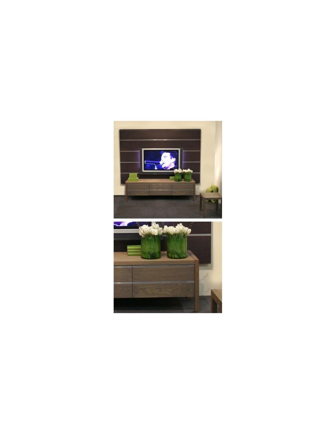 Composition TV LANDSCAPE Mettez votre écran plat en valeur ! Cet ensemble permet de positionner votre écran plat en toute simplicité. Composé d'un panneau mural ainsi que d'un meuble bas, l'ensemble de vos éléments électroniques (lecteur DVD, amplificateur, magnétoscope, etc.) y trouveront naturellement leur place. Les inserts d'inox apportent la dernière touche de modernité ... Structure et Assemblage: Panneaux et façades chêne massif, autres éléments bois avec placage chêne. Portes, façades et tiroirs sur rails métalliques cachés. Décoration: Inox épaisseur 3 mm Cette composition existe en plusieurs dimensions (nous consulter) Modèle photographié: panneau mural Longueur 225 cm, Profondeur 6 cm, Hauteur 168 cm meuble TV Buffet bas pour TV-audio avec 2 portes et 1 abattant rentrant. Existe en version buffet suspendu. Longueur 188 cm, Profondeur 52 cm, Hauteur 51 cm Différentes teintes de bois possibles: Cliquez ici pour visualiser les échantillons bois var titre = document.formulaire.titre.value.replace(/ /g, '_'); var ref = document.formulaire.ref.value; var img = document.getElementById('bordure_image_produit_fiche_produit').src; var clean_img = img.substring(50); var vignette = "v" + clean_img; //document.write("");