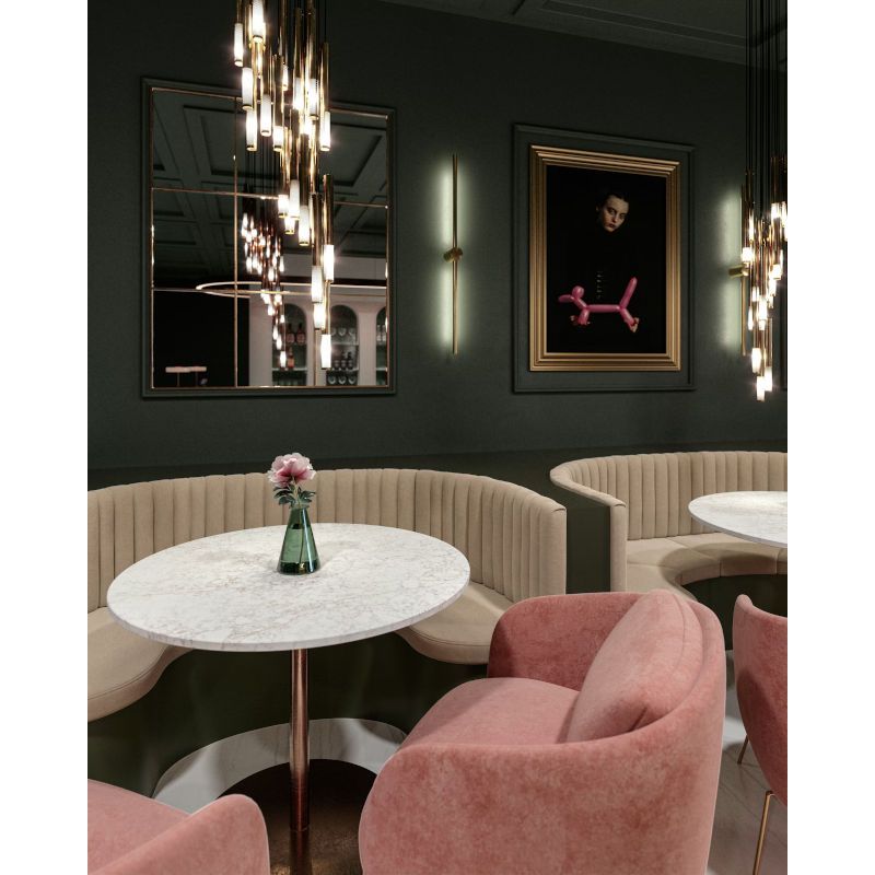Une mer implacable de veines taupe et rose blush donnent de la personnalité à un fond blanc chaud. Rivière Rose rend hommage aux motifs fantaisistes des vagues océaniques qui se brisent sur les côtes de la Côte d'Azur.