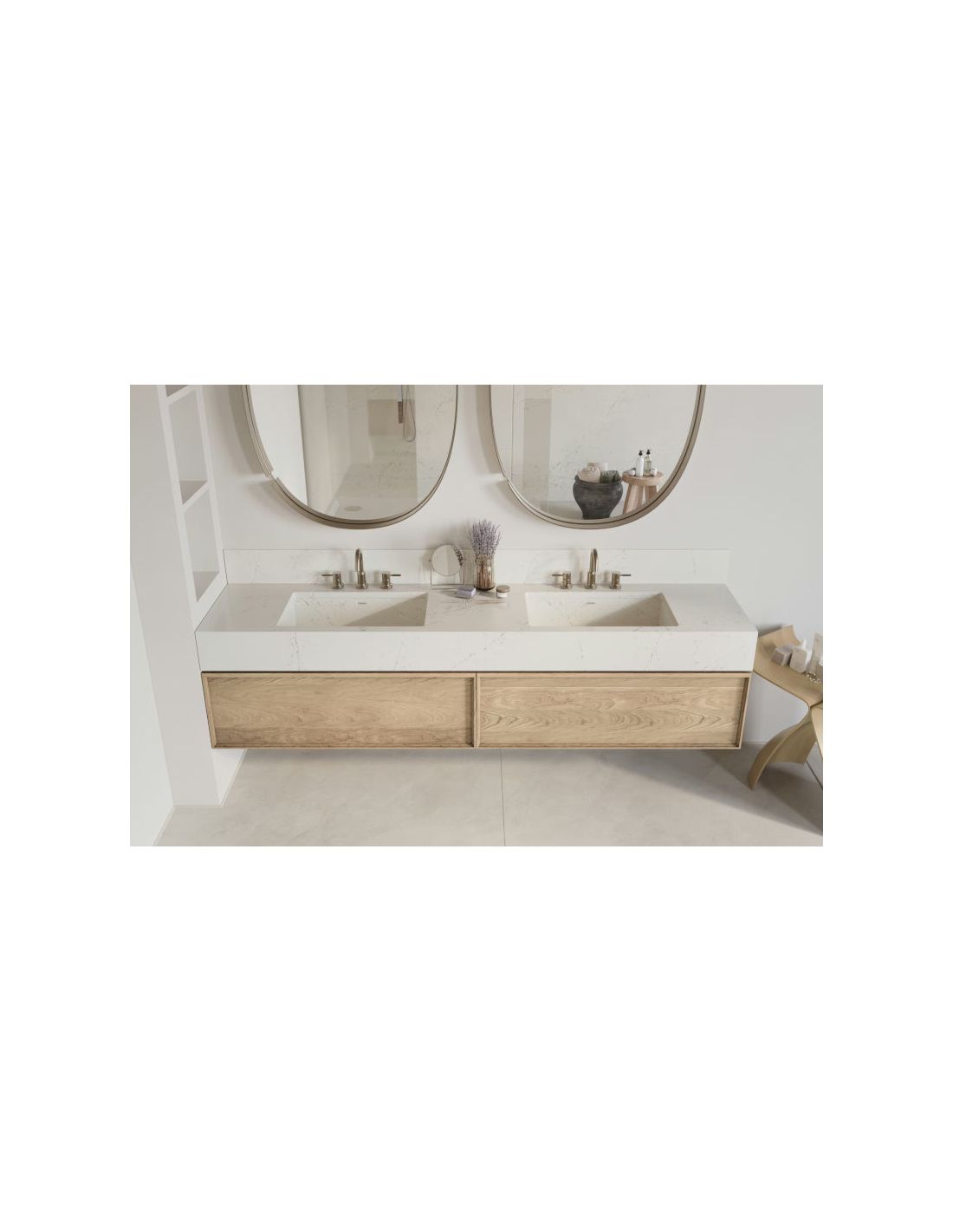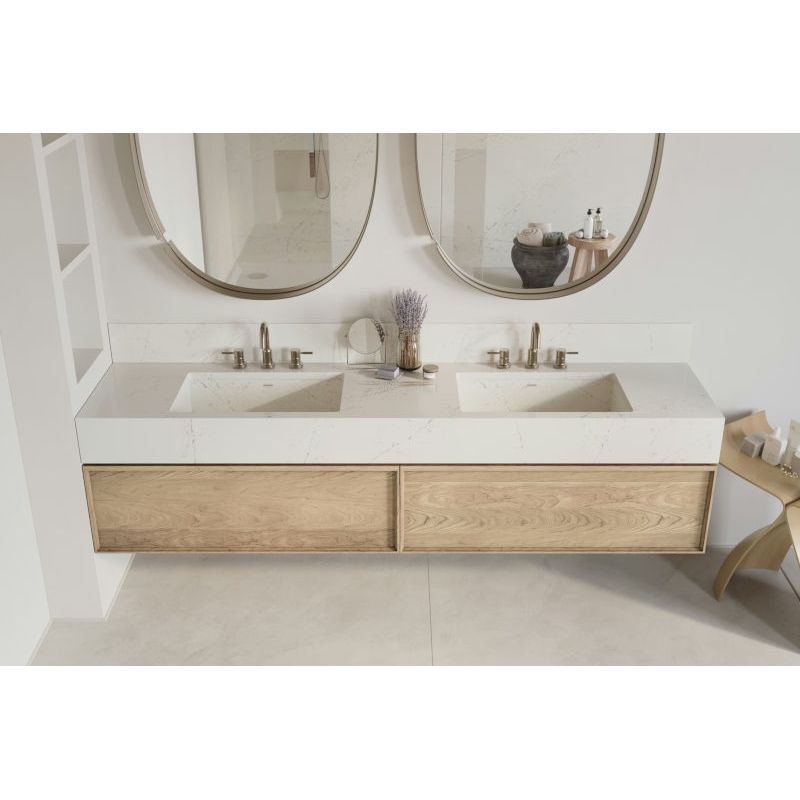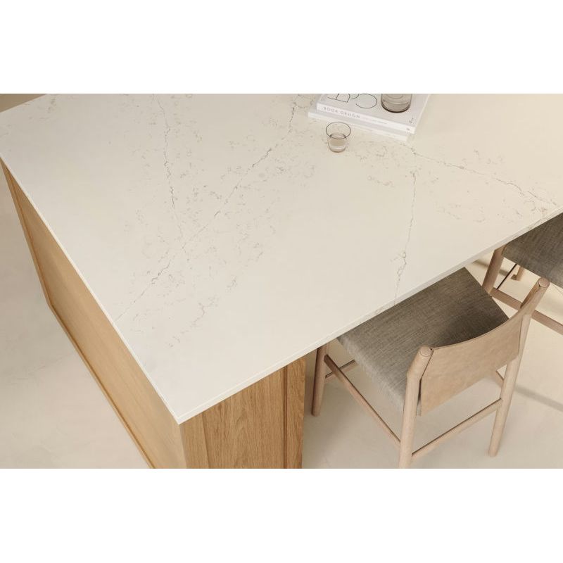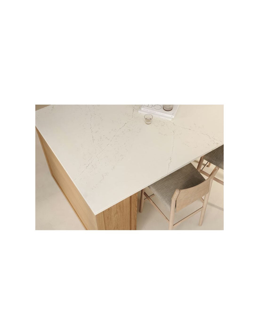 Cette couleur réinterprète le marbre classique Calacatta, apportant subtilité et élégance grâce à un motif de veines chaudes entrelacées de veines grises.
