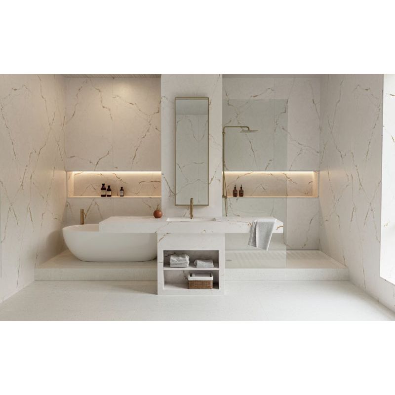 Des marbrures bicolores très subtiles en arrière-plan, avec des effets de dégradé hypnotisent avec les lumières vacillantes de son éclat doré. Versailles Ivory respire le luxe et l’élégance, rappelant l’exubérance du château de Versailles. Cette teinte exquise ajoute une touche de sophistication à n’importe quel espace, faisant une déclaration audacieuse de goût raffiné et de vie.