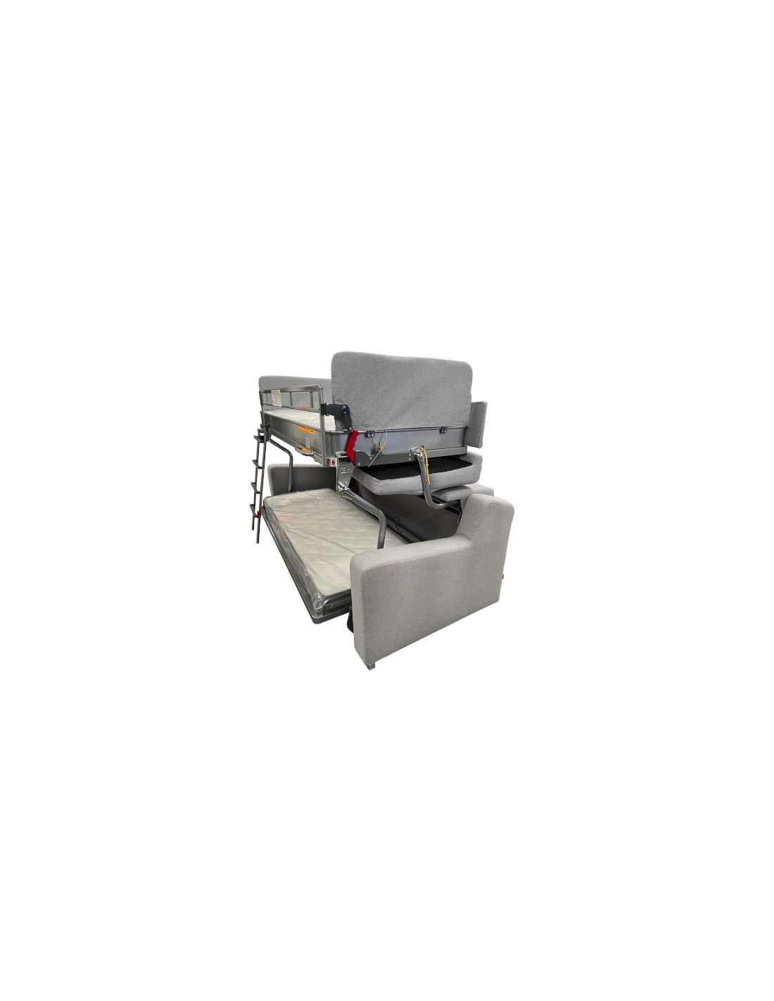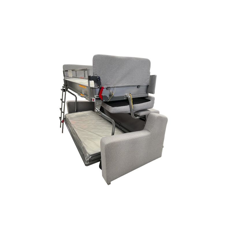 Un canapé-lit qui, grâce à un mécanisme solide et sûr, se transforme en lit superposé avec deux lits.