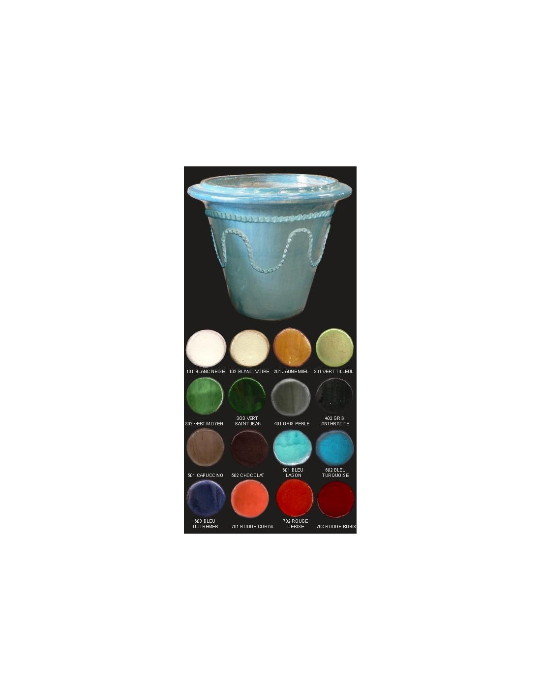 Vase COMPOSTELLE, Diamètre 78 cm, décor Serpentin Caractéristiques: La fabrication faite entièrement dans les ateliers de Saint Jean de Fos est artisanale et manuelle. Après montage, le vase est engobé puis suit une longue période de séchage. L'émaillage fait à l'arrosoir permet d'obtenir des nuances superbes dues au choix des oxydes et aux superpositions. Après une longue cuisson, les vases les plus clairs peuvent être vieillis par sablage puis application manuelle d'une patine. Dimensions: Diamètre extérieur: 78 cm, Diamètre intérieur: 60 cm, Hauteur: 66 cm. Nos vases étant réalisés de façon artisanale, les couleurs, les poids et dimensions sont indicatifs. Nous vous conseillons d'utiliser nos vases comme cache-pots, en décoration intérieure ou extérieure, ou de les isoler du contact de l'eau contenue dans la terre et la plante par un hydrofuge liquide ou un voile d'hivernage. Il est préférable de rentrer les vases de petite taille en période hivernale.