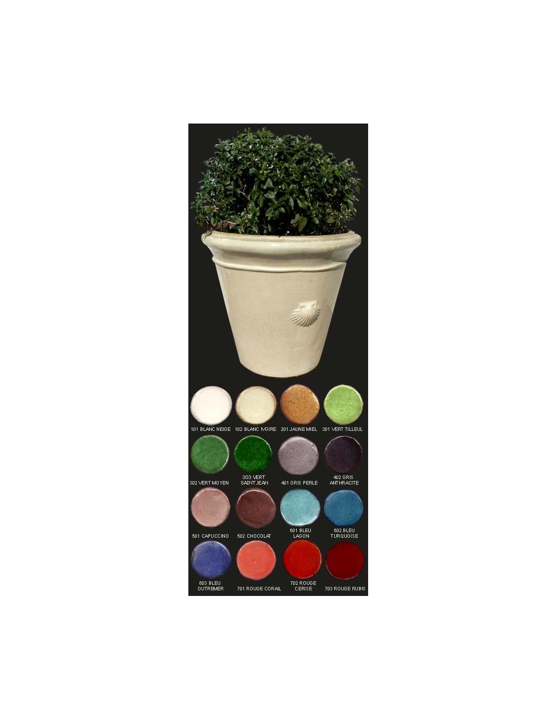 Vase COMPOSTELLE, Diamètre 88 cm, décor Coquille Caractéristiques: La fabrication faite entièrement dans les ateliers de Saint Jean de Fos est artisanale et manuelle. Après montage, le vase est engobé puis suit une longue période de séchage. L'émaillage fait à l'arrosoir permet d'obtenir des nuances superbes dues au choix des oxydes et aux superpositions. Après une longue cuisson, les vases les plus clairs peuvent être vieillis par sablage puis application manuelle d'une patine. Dimensions: Diamètre extérieur: 88 cm, Diamètre intérieur: 68 cm, Hauteur: 82 cm. Nos vases étant réalisés de façon artisanale, les couleurs, les poids et dimensions sont indicatifs. Nous vous conseillons d'utiliser nos vases comme cache-pots, en décoration intérieure ou extérieure, ou de les isoler du contact de l'eau contenue dans la terre et la plante par un hydrofuge liquide ou un voile d'hivernage. Il est préférable de rentrer les vases de petite taille en période hivernale.