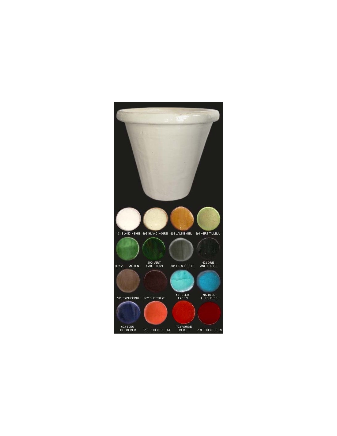Vase CUVIER, Diamètre 78 cm, BLANC NEIGE Caractéristiques: La fabrication faite entièrement dans les ateliers de Saint Jean de Fos est artisanale et manuelle. Après montage, le vase est engobé puis suit une longue période de séchage. L'émaillage fait à l'arrosoir permet d'obtenir des nuances superbes dues au choix des oxydes et aux superpositions. Après une longue cuisson, les vases les plus clairs peuvent être vieillis par sablage puis application manuelle d'une patine. Dimensions: Diamètre extérieur: 78 cm, Diamètre intérieur: 64 cm, Hauteur: 68 cm. Nos vases étant réalisés de façon artisanale, les couleurs, les poids et dimensions sont indicatifs. Nous vous conseillons d'utiliser nos vases comme cache-pots, en décoration intérieure ou extérieure, ou de les isoler du contact de l'eau contenue dans la terre et la plante par un hydrofuge liquide ou un voile d'hivernage. Il est préférable de rentrer les vases de petite taille en période hivernale.